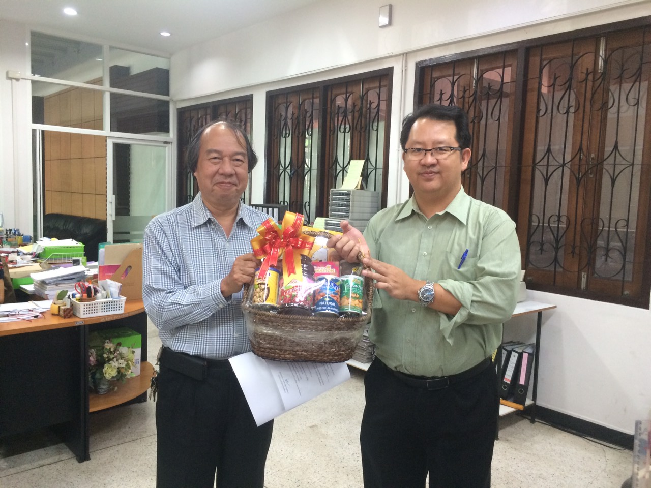 วันที่ 28 ธ.ค.58 ผศ.ดร.ชัชวาลย์ ชัยชนะ หัวหน้าศูนย์วิจัยเทคโนโลยีพลังงานเพื่อสิ่งแวดล้อม (ETE) มอบกระเช้าเพื่อสวัสดีปีใหม่แด่ ดร.ณอคุณ สิทธิพงศ์ อดีตปลัดกระทรวงพลังงาน ปัจจุบันท่านดำรงตำแหน่งกรรมการสภามหาวิทยาลัยผู้ทรงคุณวุฒิ และอาจารย์พิเศษ คณะวิศวกรรมศาสตร์ มช.