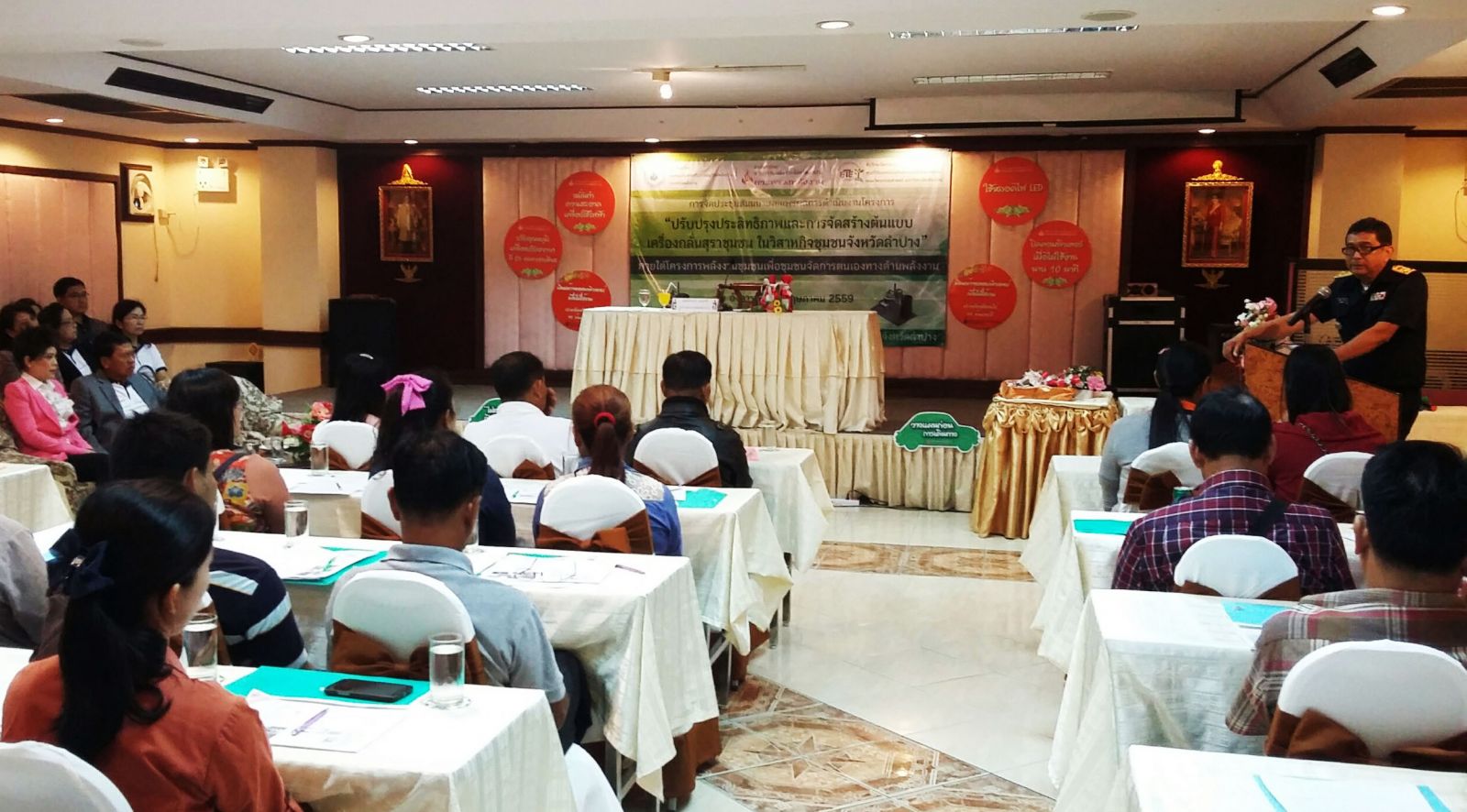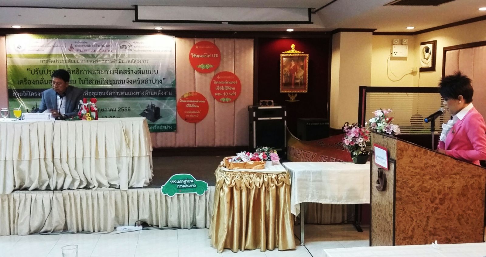 วันที่ 2 มิ.ย.59 สำนักงานพลังงานจังหวัดลำปาง กระทรวงพลังงาน ร่วมกับศูนย์วิจัยเทคโนโลยีพลังงานเพื่อสิ่งแวดล้อม คณะวิศวกรรมศาสตร์ มหาวิทยาลัยเชียงใหม่ (ETE) และสรรพสามิต จังหวัดลำปาง กรมสรรพสามิต จัดประชุมสัมมนาเผยแพร่ผลการดำเนินงานโครงการ “ปรับปรุงประสิทธิภาพและการจัดสร้างต้นแบบเครื่องกลั่นสุราชุมชนในวิสาหกิจชุมชน จังหวัดลำปาง” ภายใต้โครงการพลังงานชุมชนเพื่อชุมชนจัดการตนเองทางด้านพลังงาน ณ ห้องวังธาร โรงแรมรีเจนท์ ลอด์จ ลำปาง อำเภอเมือง จังหวัดลำปาง