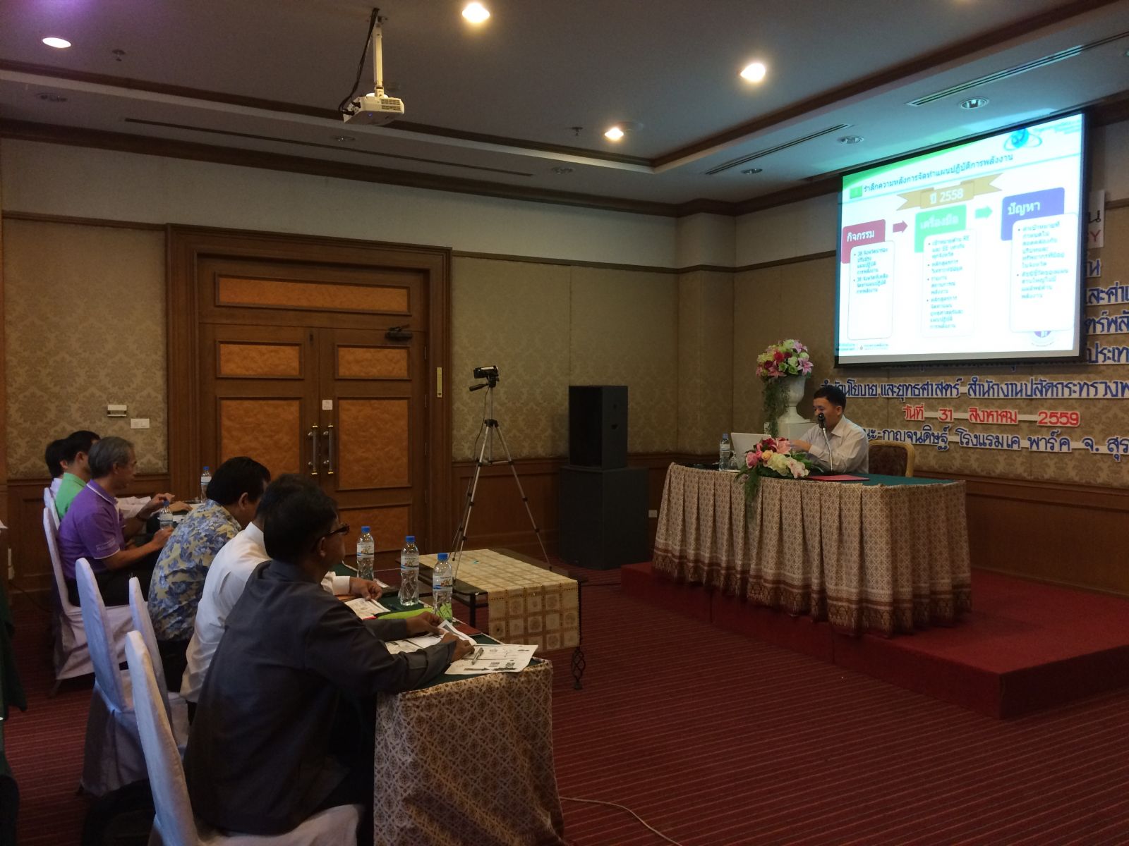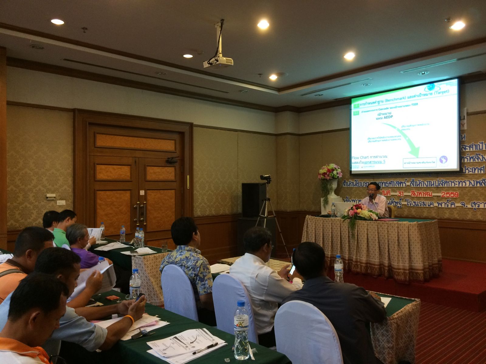 สำนักนโยบายและยุทธศาสตร์ สำนักงานปลัดกระทรวงพลังงาน ร่วมกับศูนย์วิจัยเทคโนโลยีพลังงานเพื่อสิ่งแวดล้อม คณะวิศวกรรมศาสตร์ มหาวิทยาลัยเชียงใหม่ (ETE) จัดสัมมนารับฟังความคิดเห็นเกี่ยวกับดัชนีชี้วัด ค่าฐาน และค่าเป้าหมายสำหรับแผนปฏิบัติการพลังงานจังหวัด ภายใต้โครงการบูรณาการแผนยุทธศาสตร์พลังงานระดับกลุ่มจังหวัดตามยุทธศาสตร์ประเทศ ให้แก่เจ้าหน้าที่จากสำนักงานพลังงานจังหวัดในกลุ่มภาคใต้จำนวน 14 จังหวัด ณ โรงแรม เค พาร์ค แกรนด์ จังหวัดสุราษฎร์ธานี เมื่อวันที่ 31 สิงหาคม 2559 ผู้เข้าร่วมทั้งสิ้น 29 คน